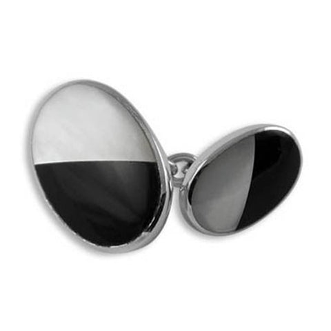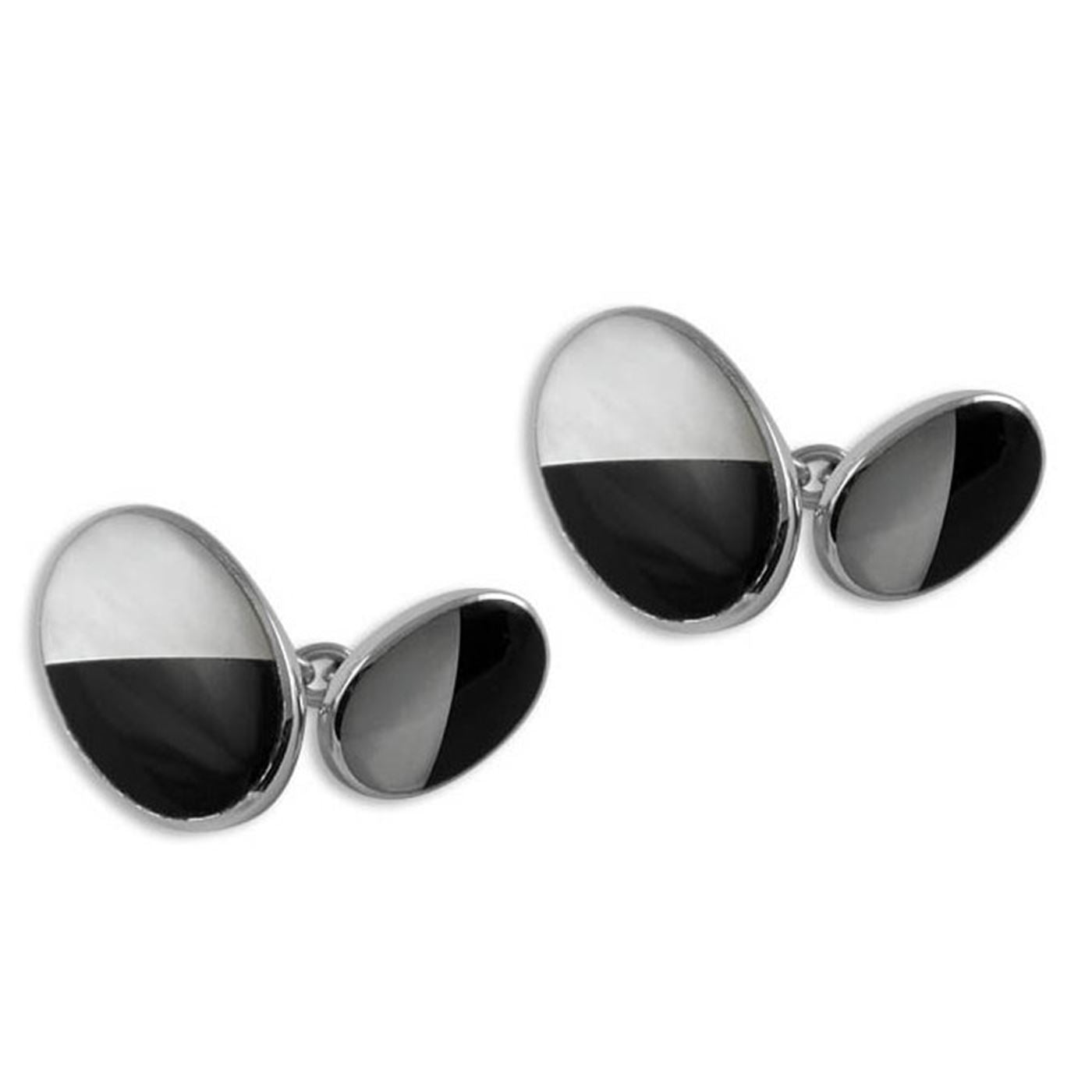 We put our heads together and came up with this dramatic design for these double-sided cufflinks. The stones have been seamlessly put together to create an ellipse; we€™ve used a larger oval for the front, a smaller one for the back. Set in sterling silver with an interconnecting chain. Luxury box included in sale.