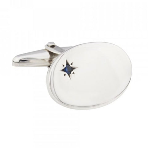 Sterling Silver Oval Sapphire Cufflinks. Off set sapphire set in genuine 925 sterling silver, hand crafted and exceptional quality shown throughout.