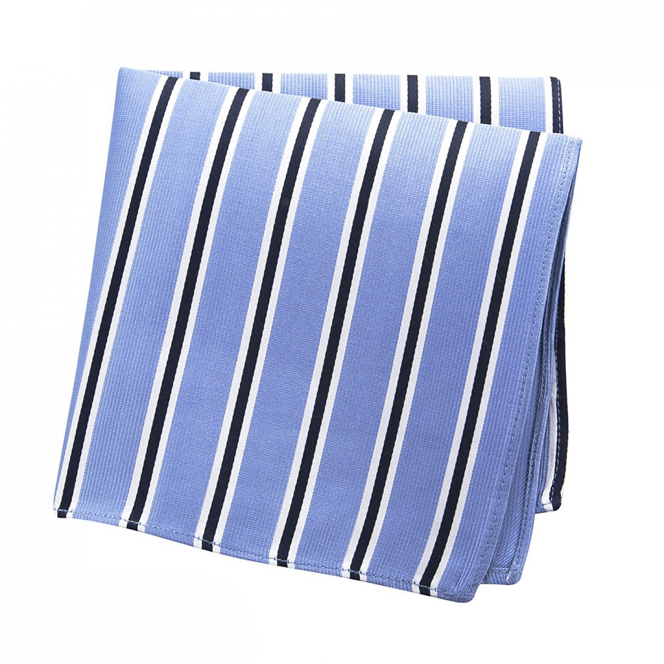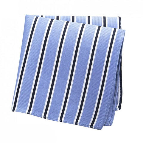Light Blue with White & Navy Stripes Silk Handkerchief