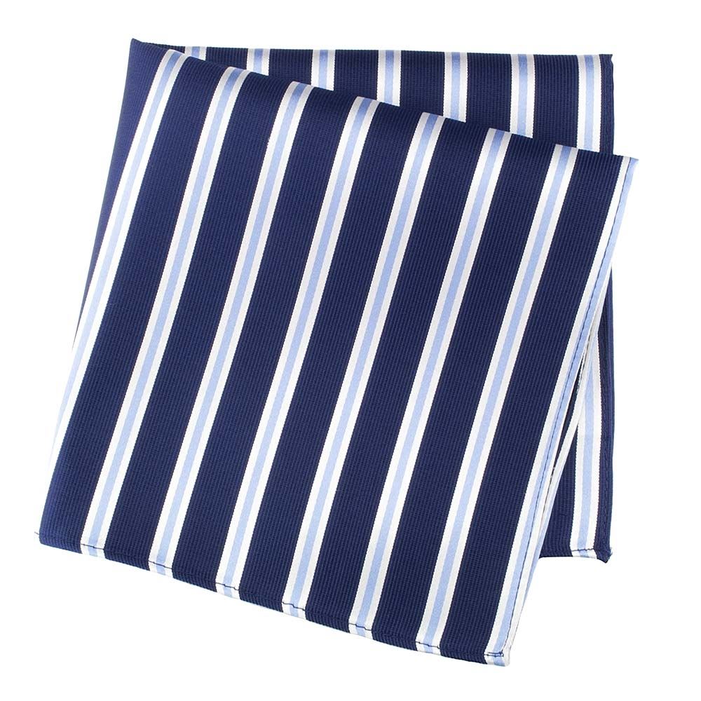 Navy With White And Blue Stripes Silk Handkerchief