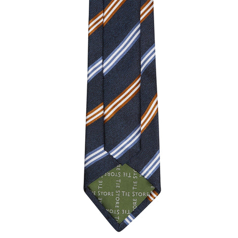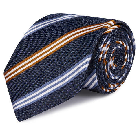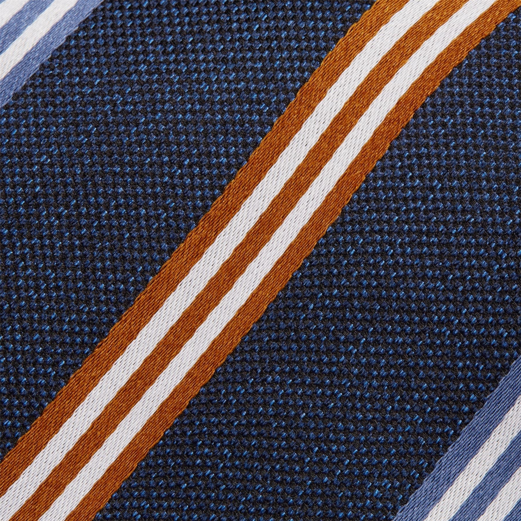 Blue and Burnt Orange Textured Silk Club Stripe Tie - Add some classic club stripes to your tie collection with this timeless 100% woven textured tie. Perfect for casual or business wear this tie can be dressed up or down for any occasion.Made using 100% Woven Silk and Hand Finished Dimensions: 8.0cm x 145cm