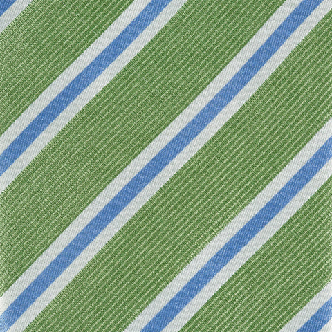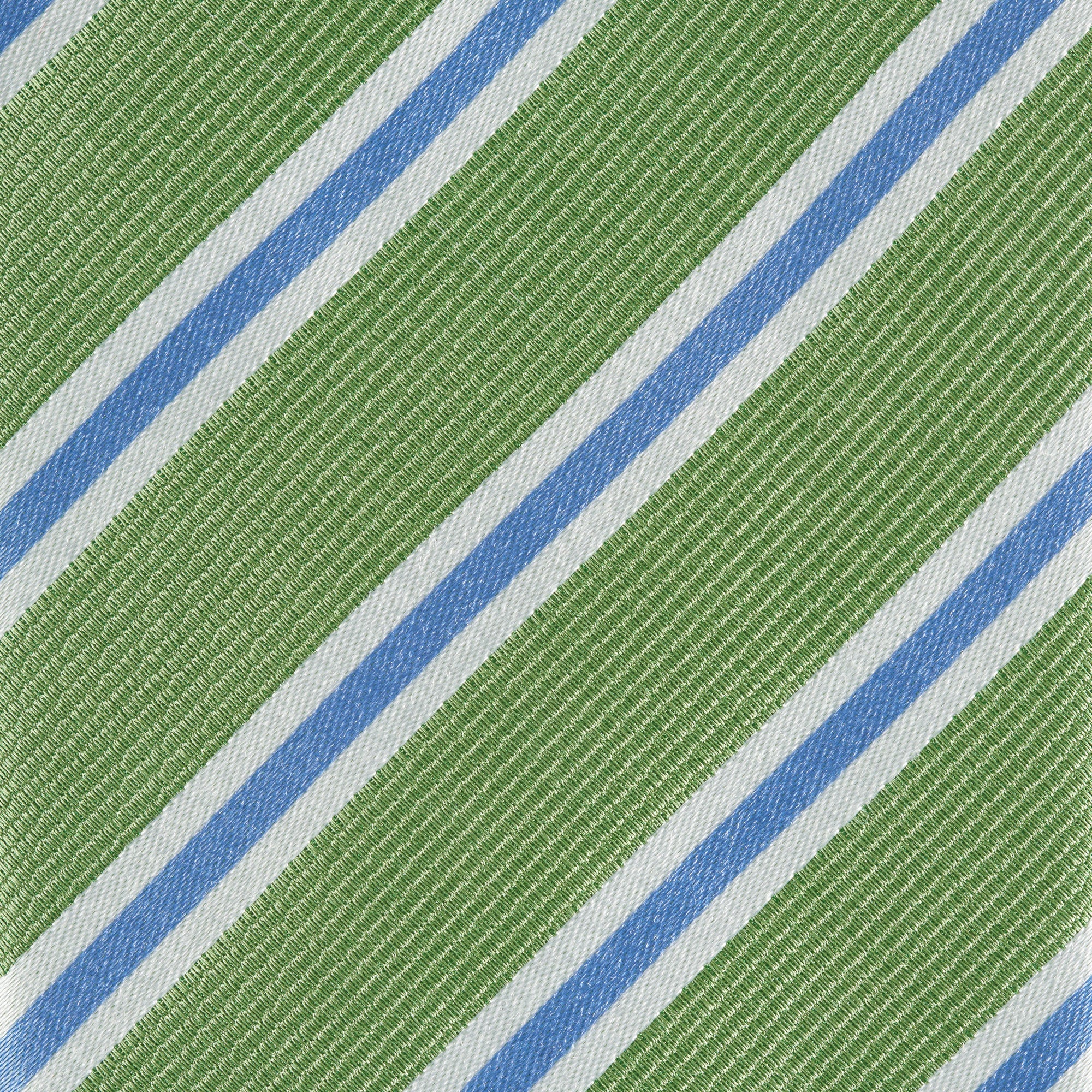 Green With White And Blue Stripes Silk Tie - This fashionable tie can be worn within a corporate environment as well as on special occasions. The woven silk gives the tie a more textured look and looks fantastic in a full Windsor knot. Tie Size 8.0cm x 148cm 100% Silk