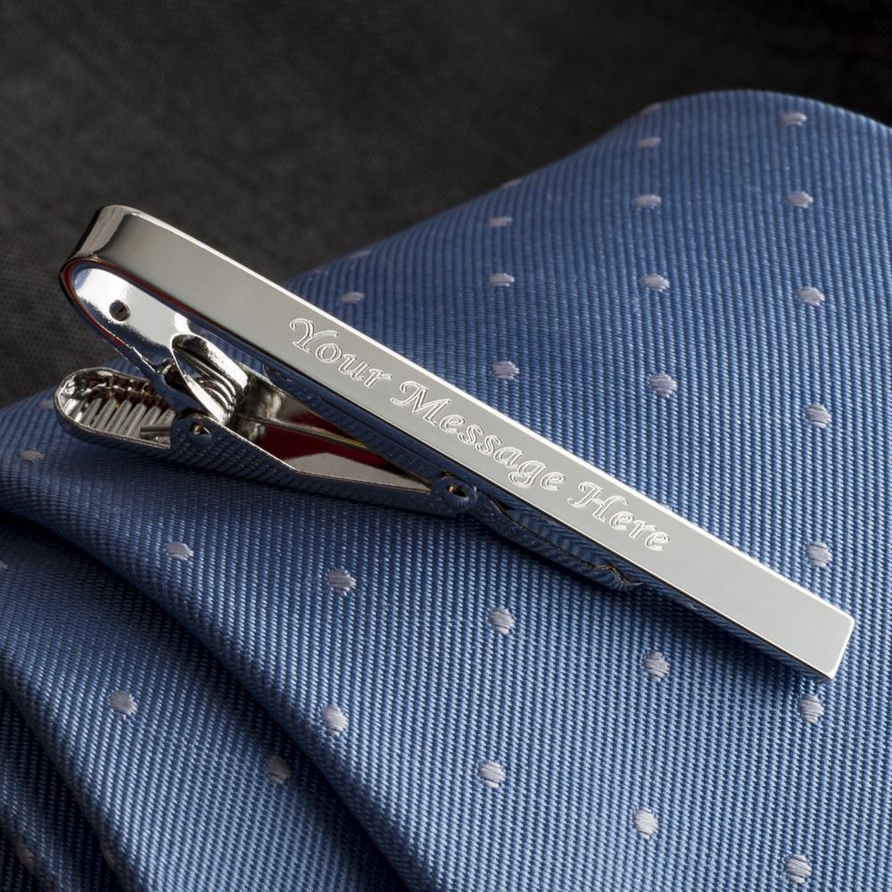 Rhodium plated tie bar, fantastic quality shown throughout. The perfect personalised accessory to add that touch of class to your attire. Engrave upto 15 characters. Giftbox included in sale.
