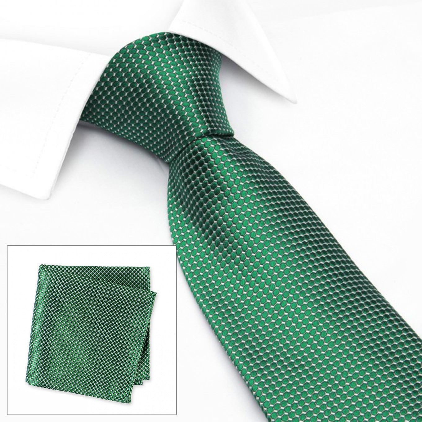 Add some classic patterns to your neck tie collection with this matching silk tie and handkerchief set finished in a beautiful green weave. Perfect for weddings, special occasions or everyday business wear. Made using 100% Woven Silk - Tie Dimensions: 8.0cm x 145cm - Handkerchief Dimensions: 25cm x 25cm