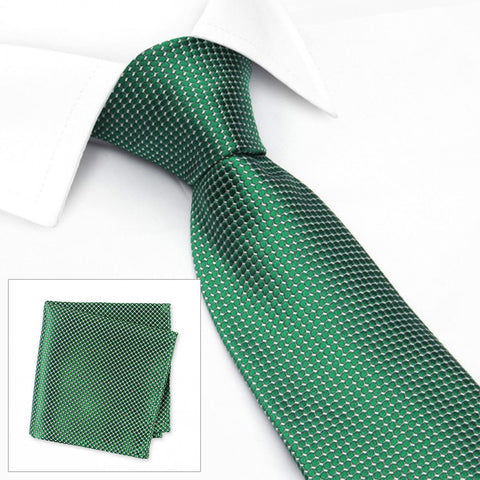 Emerald Green Silk Lattice Tie & Handkerchief Set