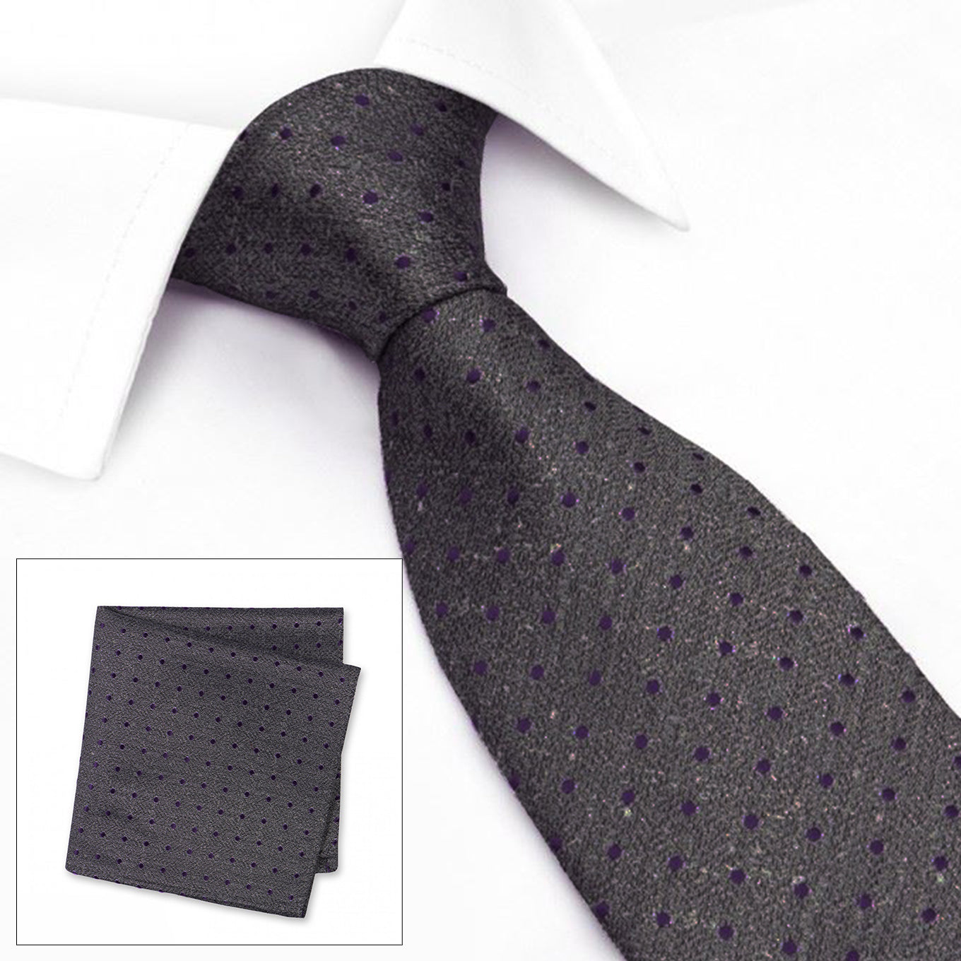 Grey & Purple Textured Spot Silk Tie & Handkerchief Set