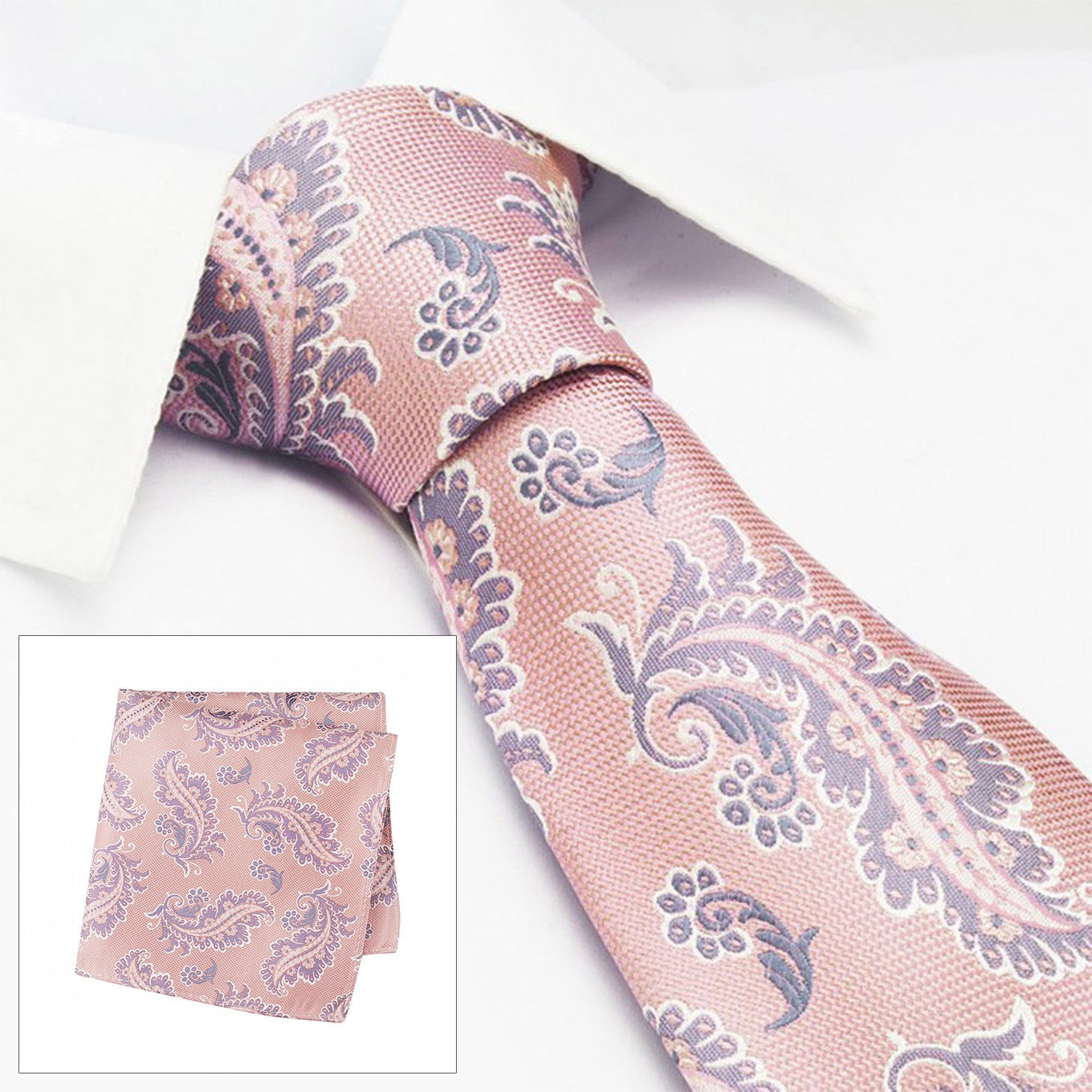 Pink Luxury Paisley Leaf Silk Tie & Handkerchief Set