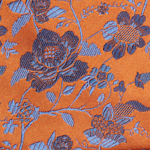 Burnt Orange and Navy Floral Woven Silk Tie - Add some floral patterns to your tie collection with this timeless 100% woven textured luxury silk tie.Perfect for casual, business or special occasion wear this tie can be dressed up or down as per your needs. Made using 100% Woven Silk and Hand Finished Dimensions: 8.0cm x 148cm