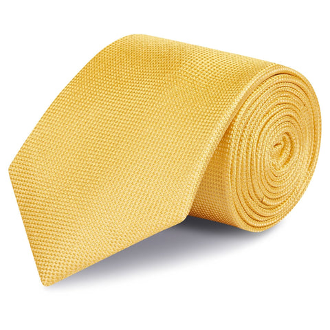 Pale Gold Silk Plain Classic Textured TieIf you only buy one tie this season, this pale gold silk tie is the perfect choice. It goes with a vast array of shirt designs and colours and is beautifully made to last season after season.Perfect for weddings, special occasions or everyday business wear.Made using 100% Woven Silk Dimensions: 8.0cm x 148cm