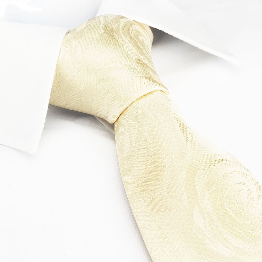Ivory Rose Luxury Woven Silk Tie - Made using 100% luxury woven silk and featuring a classic rose design throughout. This tie is perfect for weddings, special occasions or even for everyday smart wear. 100% Silk Dimensions: 8.0cm x 148cm