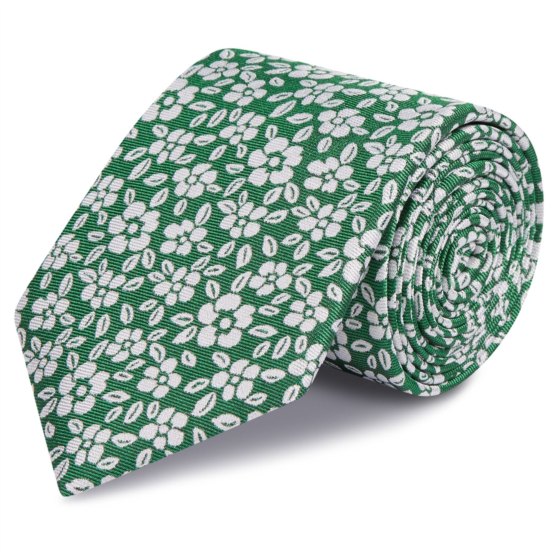Green and White Daisy Chain Floral Silk Tie Add some floral patterns to your tie collection with this timeless 100% woven silk tie.Perfect for weddings or special events this tie can be dressed up or down for any occasion.Made using 100% Woven Silk and Hand Finished Dimensions: 8.0cm x 145cm