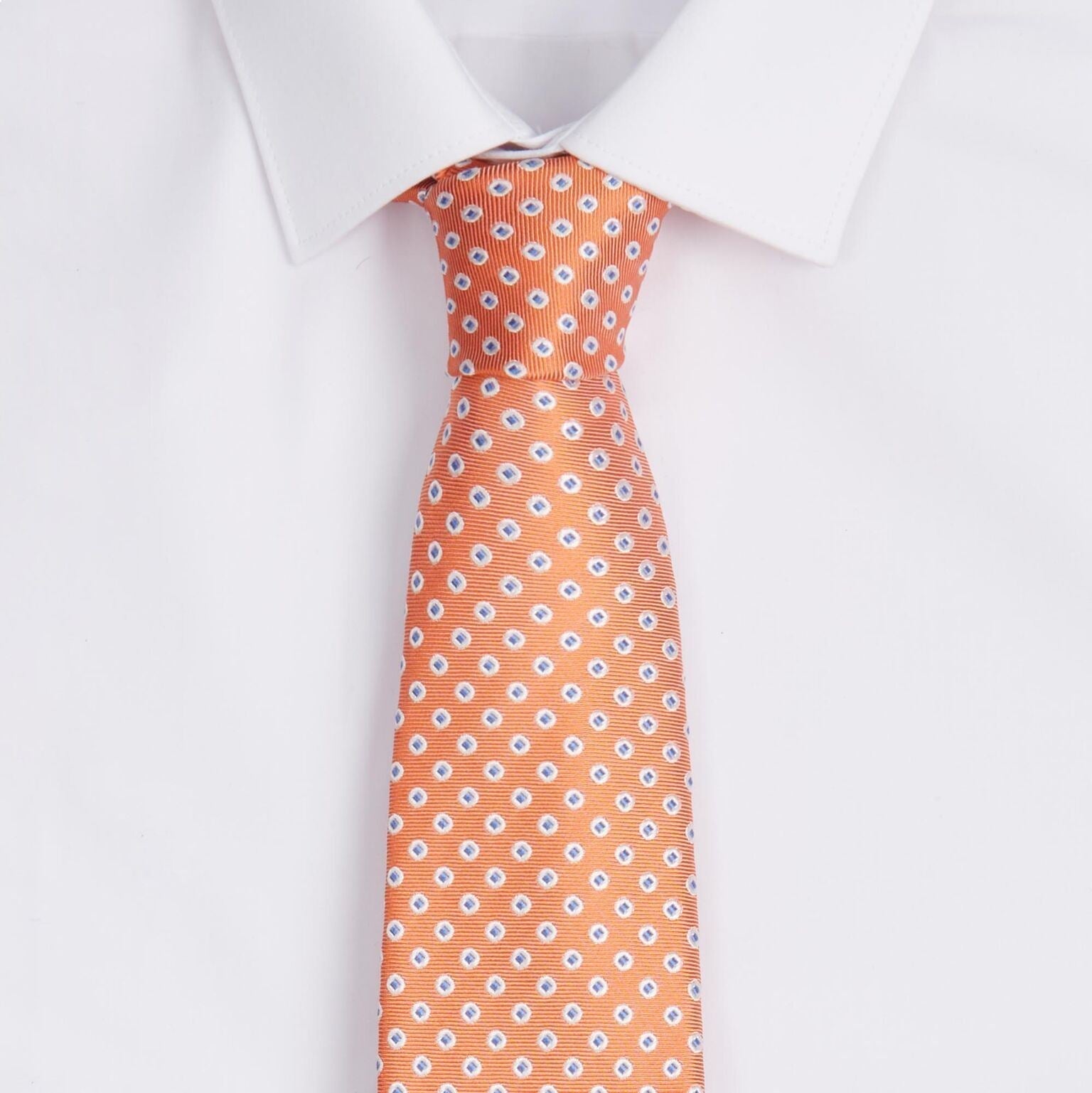 Orange and Blue Classic Oxford Spot Silk Tie - Add some classic spots to your tie collection with this timeless 100% woven textured tie. Perfect for casual or business wear this tie can be dressed up or down for any occasion.Made using 100% Woven Silk and Hand Finished Dimensions: 8.0cm x 148cm