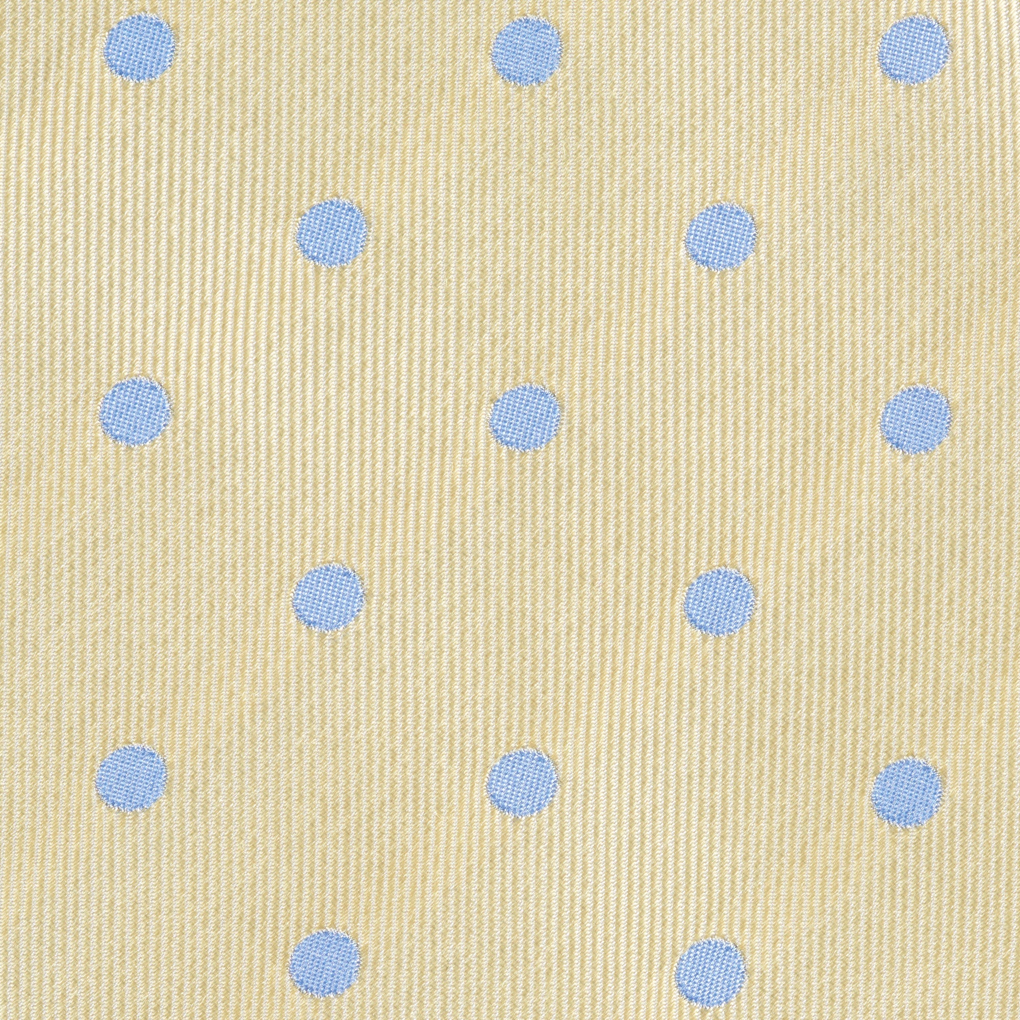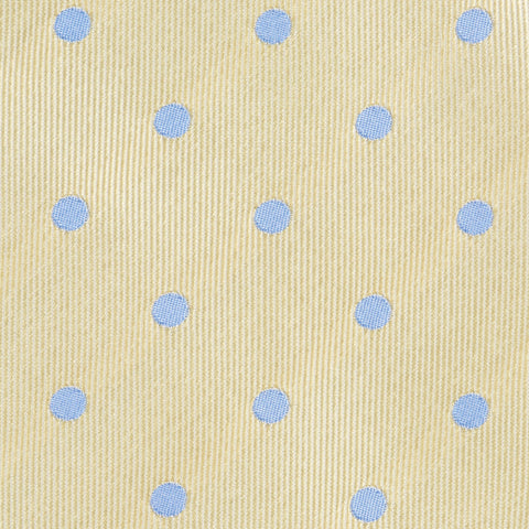 Yellow Silk Tie With Blue Polka Dots - Luxury yellow printed silk tie with blue polka dots, a conservative design with a twist. An excellent value tie that can be worn year after year. 100% Silk Dimension: 8.0cm x 148cm